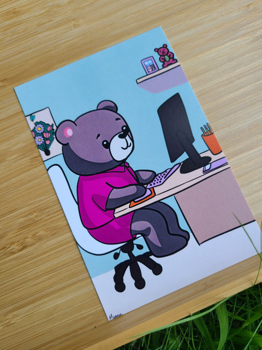 Mama Bear Working From Home Art Print 4x6in